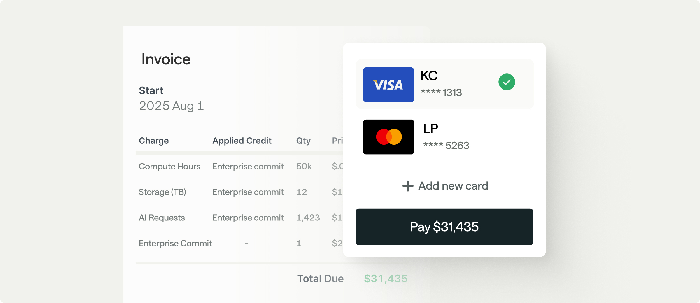 - Empower customers with usage and spend transparency: Customers get full access to invoices, usage, and payment information.